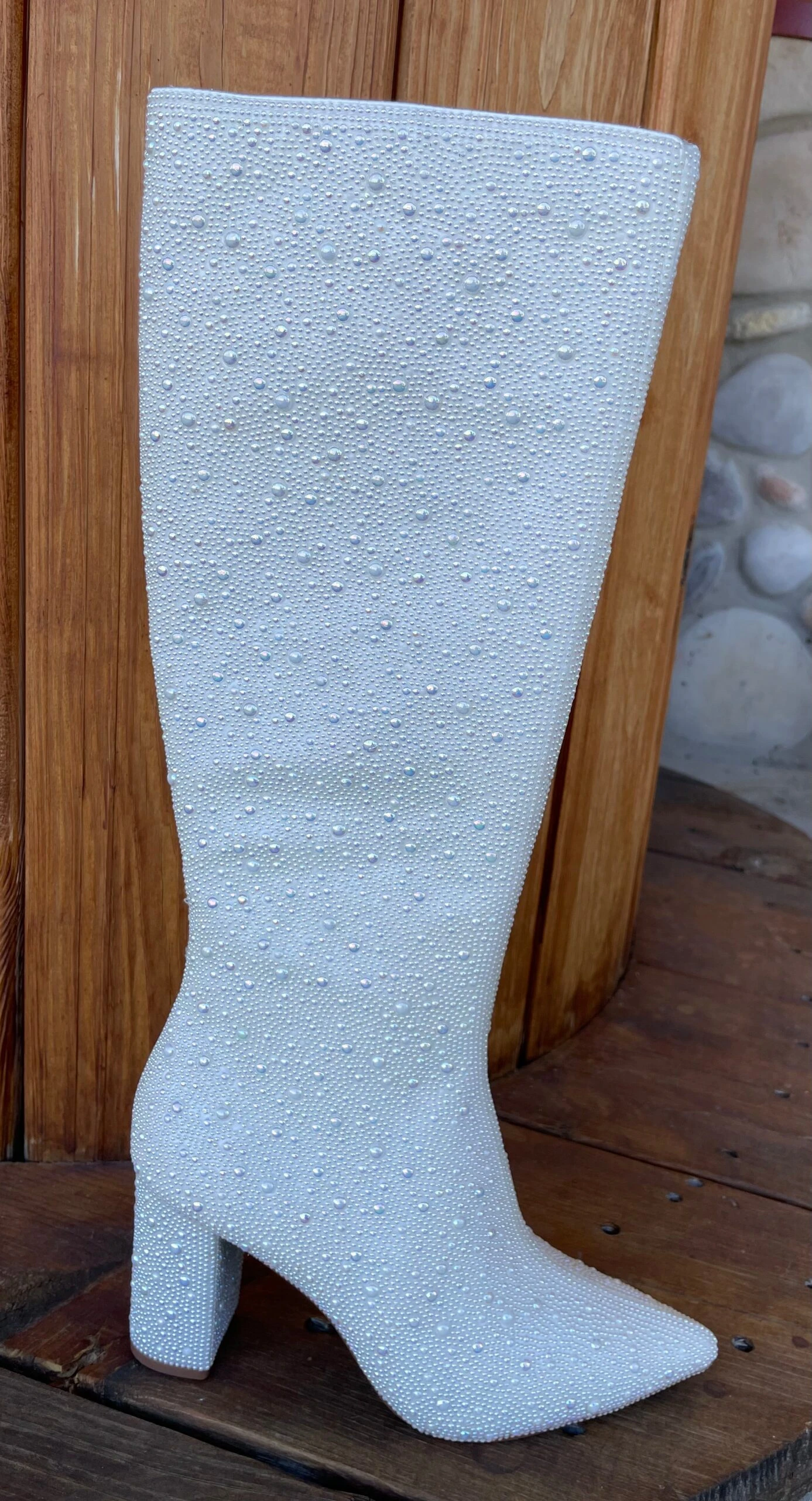 The wait is OVER! The new CANDY boots by Betsey Johnson are here! Sugar and spice and everything nice! The dream boot for every bride to be, or stand out at that special event! Iridescent pearls that shimmer, shine and are full of glam! The Candy boots are so SUGARY SWEET- you will get a tooth ache!