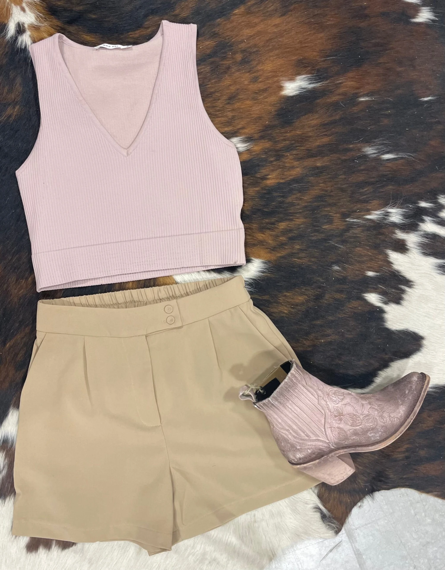 SKU: C2HVC 6745664225383 Categories: Bottoms, Shorts, Women Tags: Coco Shorts, Ee:some, Elastic waist shorts, Tan shorts