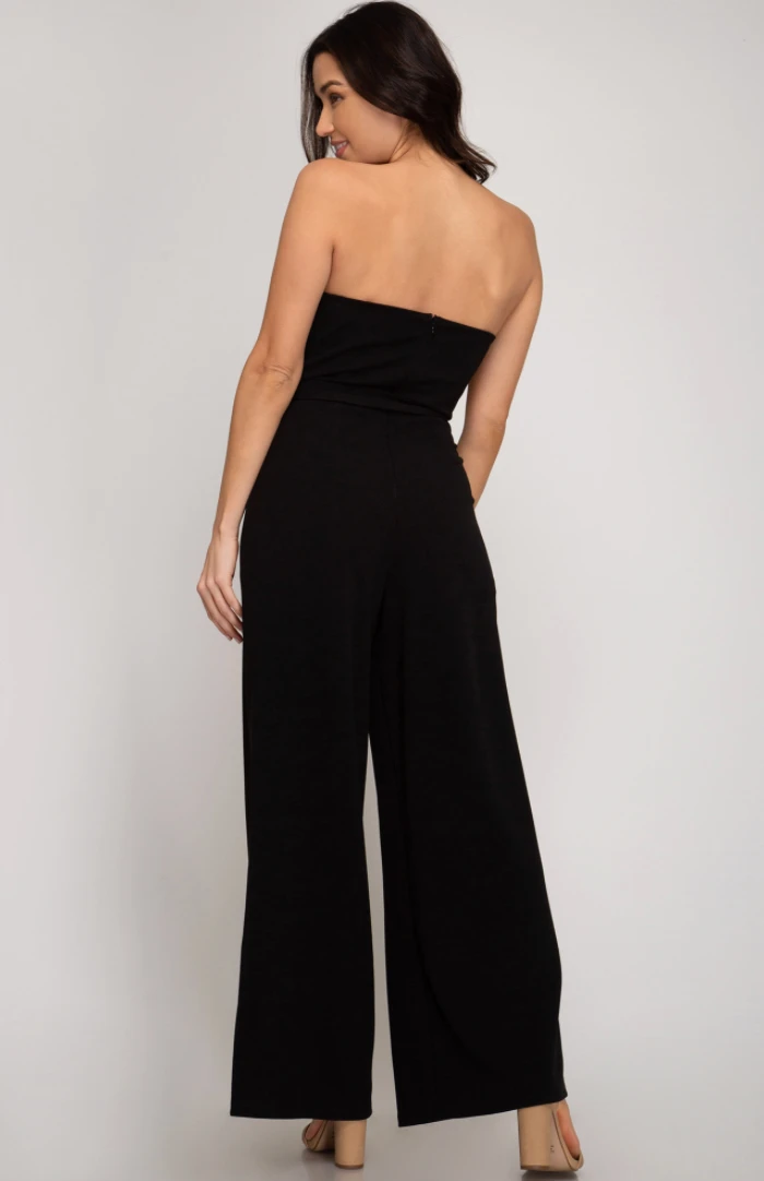 Whether you are looking for an outfit for a wedding, date night with your man, or a girls night out, we have you covered! Our Don’t Jump-Suit To Conclusions is strapless with a zipper up the back. It features a small v-neck front with a tie belt around the waist. This jumpsuit is so elegant, yet super stretchy, leaving you comfortable all night!Â