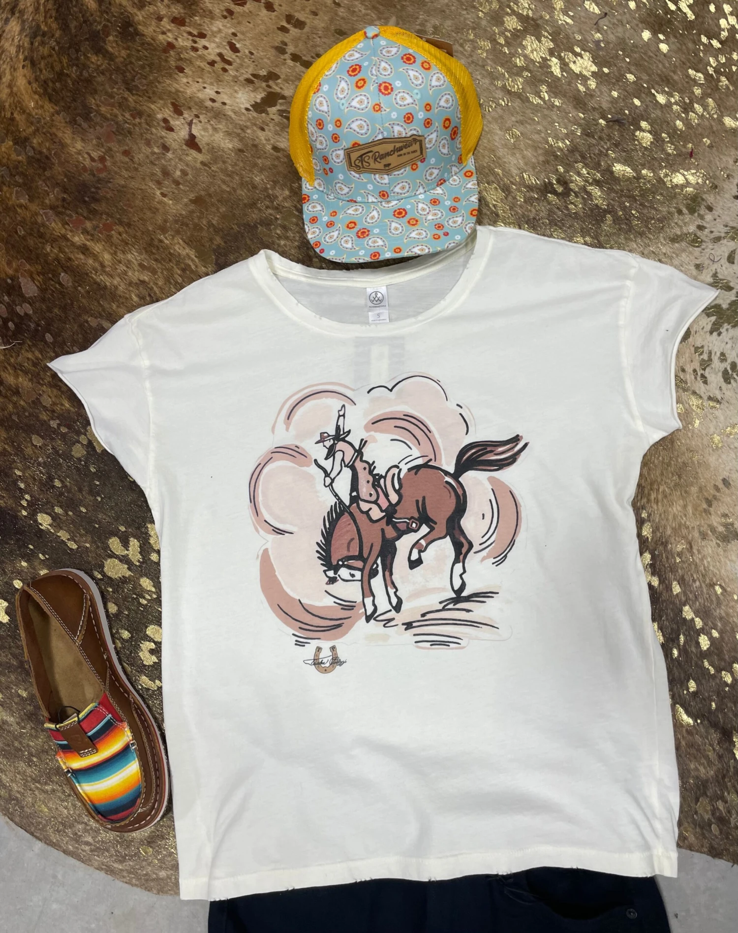 Woot Woot! Kickin’ Up Dust Tee is here and oooohhh so cute! This super soft graphic tee is poppin’! Ya just can’t go wrong with a tee that features a brave cowboy! We love the distress neckline and raw edges to sleeves! Yes, please!