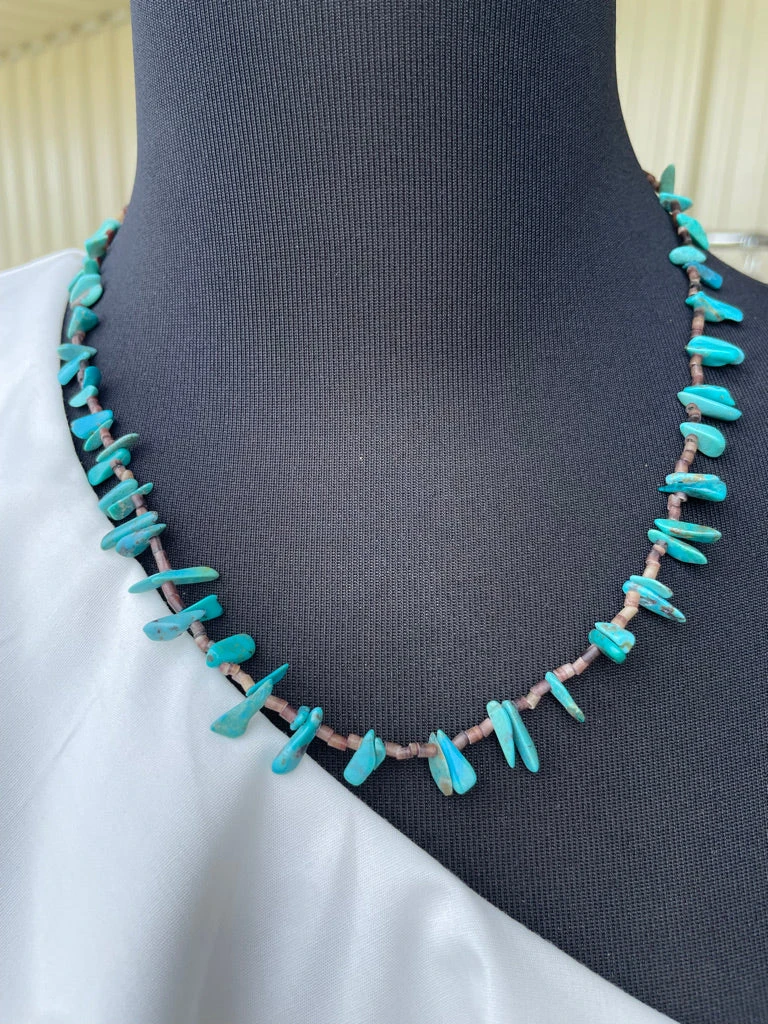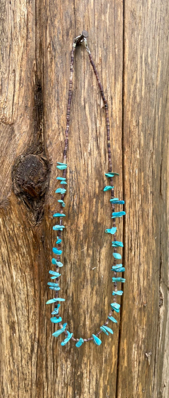 The Lola Turquoise and Brown Necklace is FIRE! We love the chippy turquoise stone and brown combination!Â