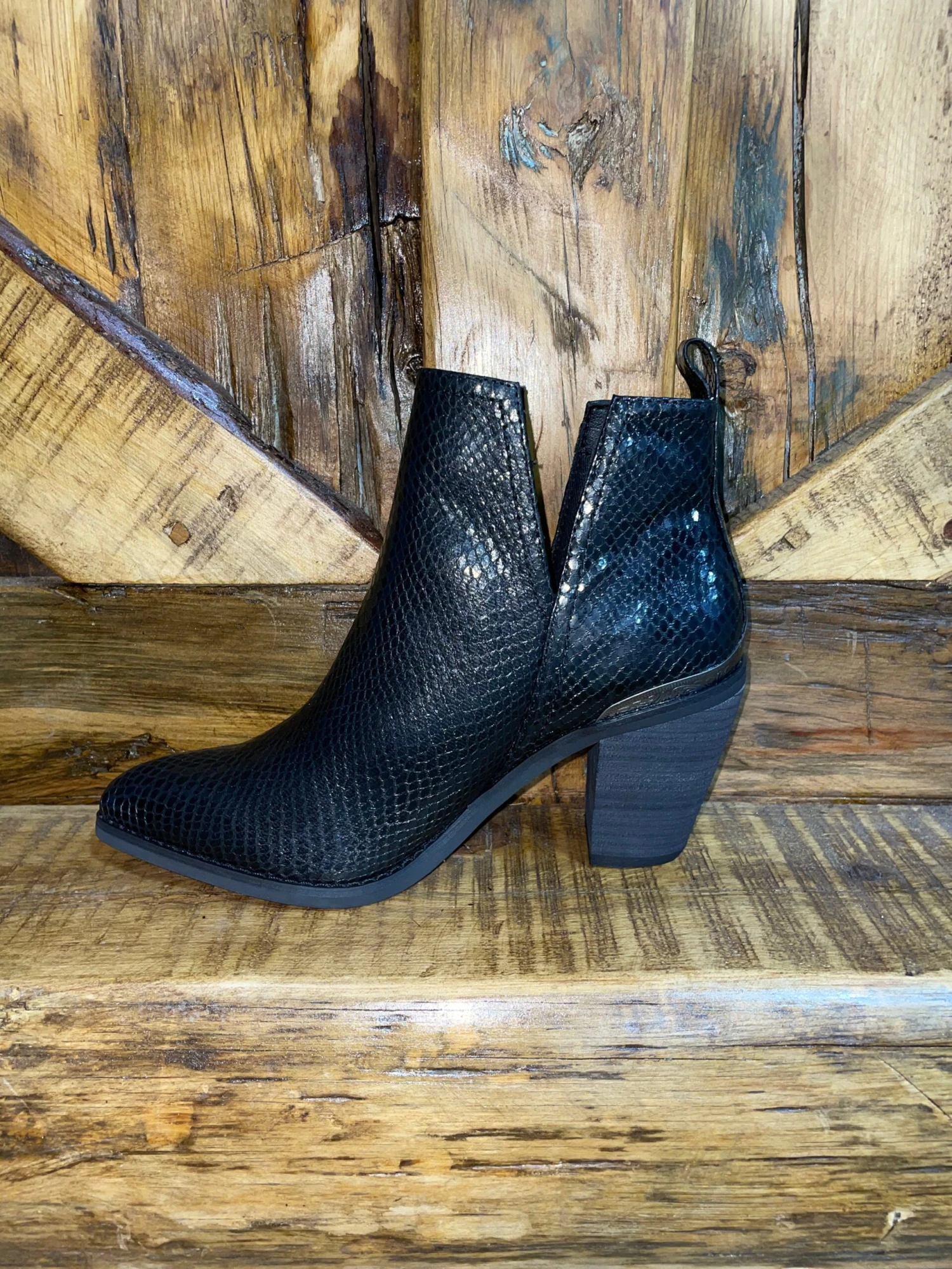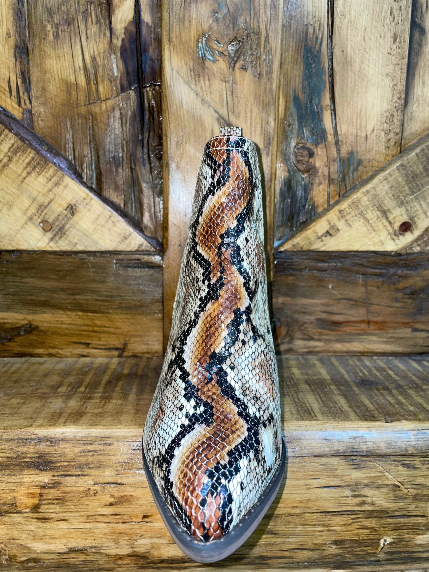 Kind of hard to sneak around in our “Snaking’ Around Booties” with the 3 1/4 inch heel but I’m sure someone can figure it out! Will you be running around the town in our new adorable faux snake print booties?