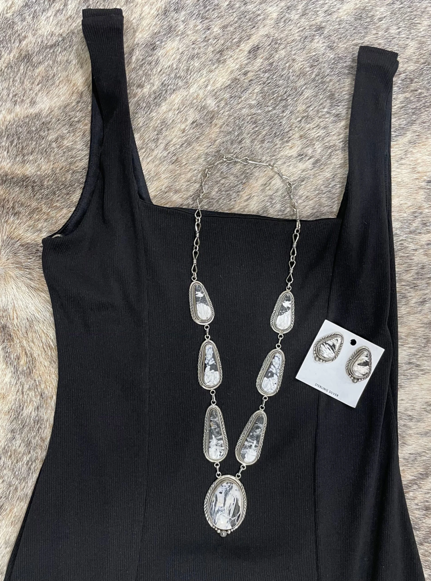 Necklace: Chain, 3 Stones On Each Side, 1 Large Cabochon In Center.